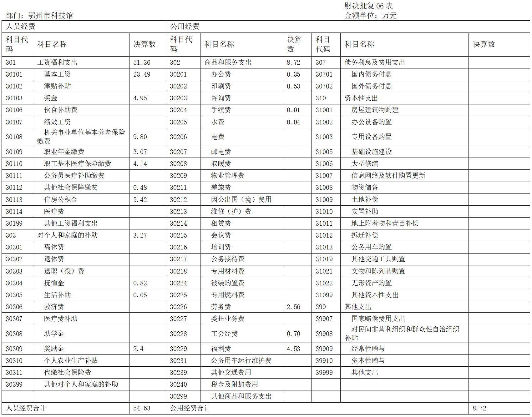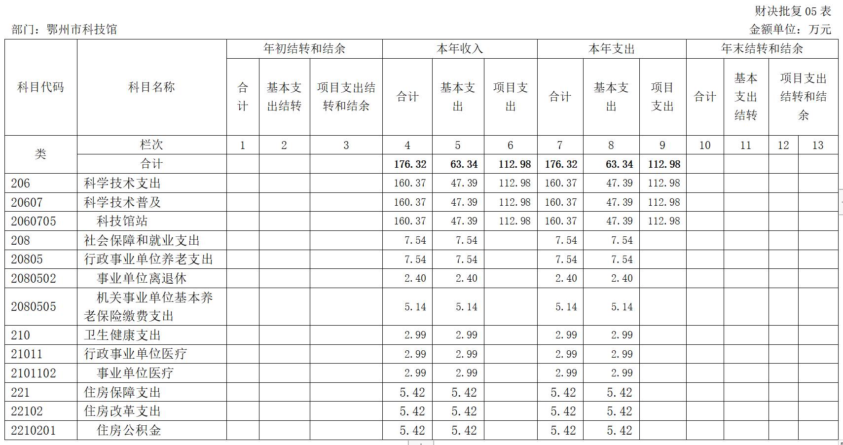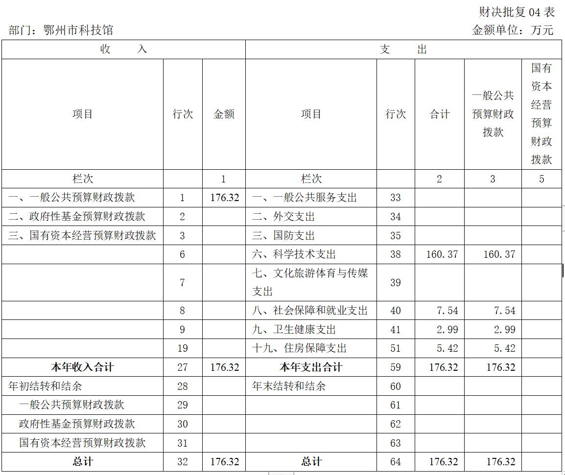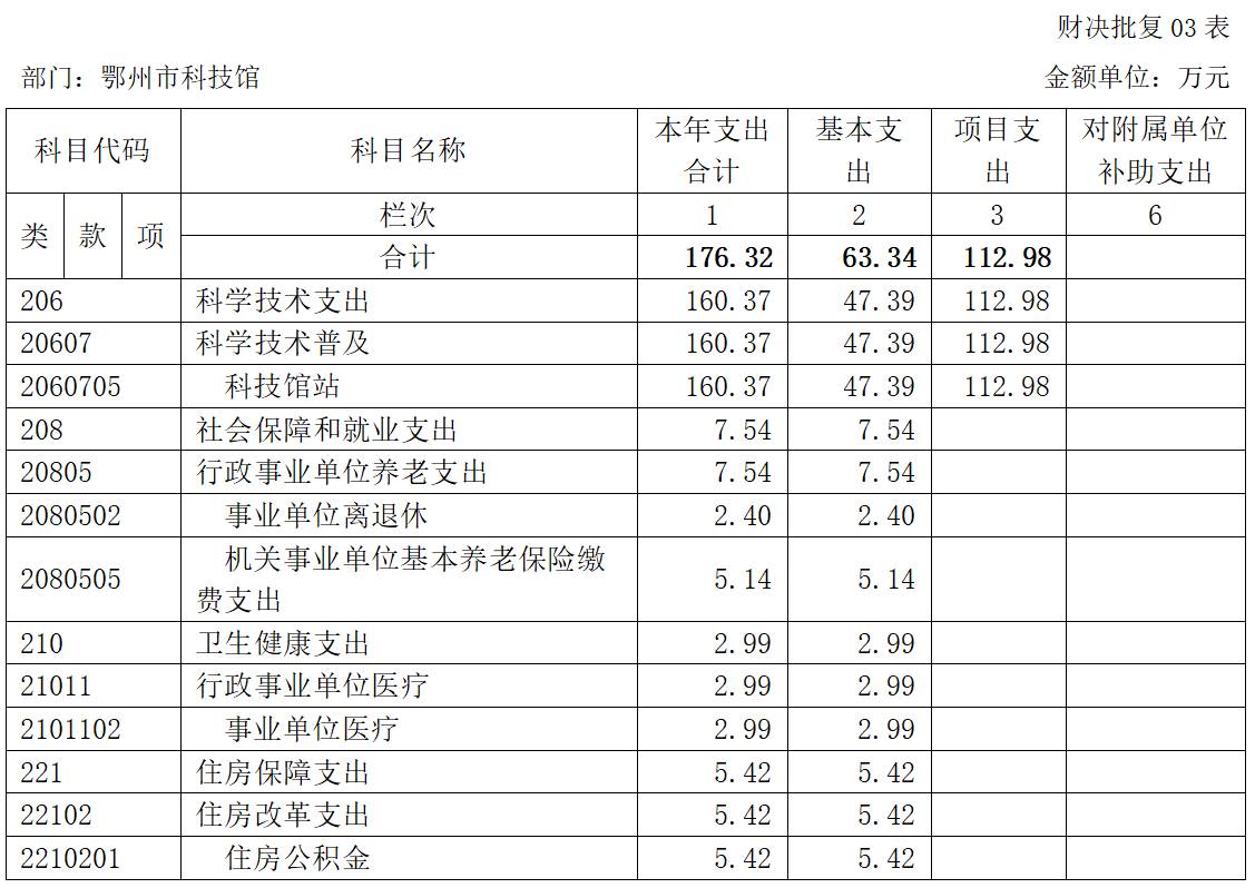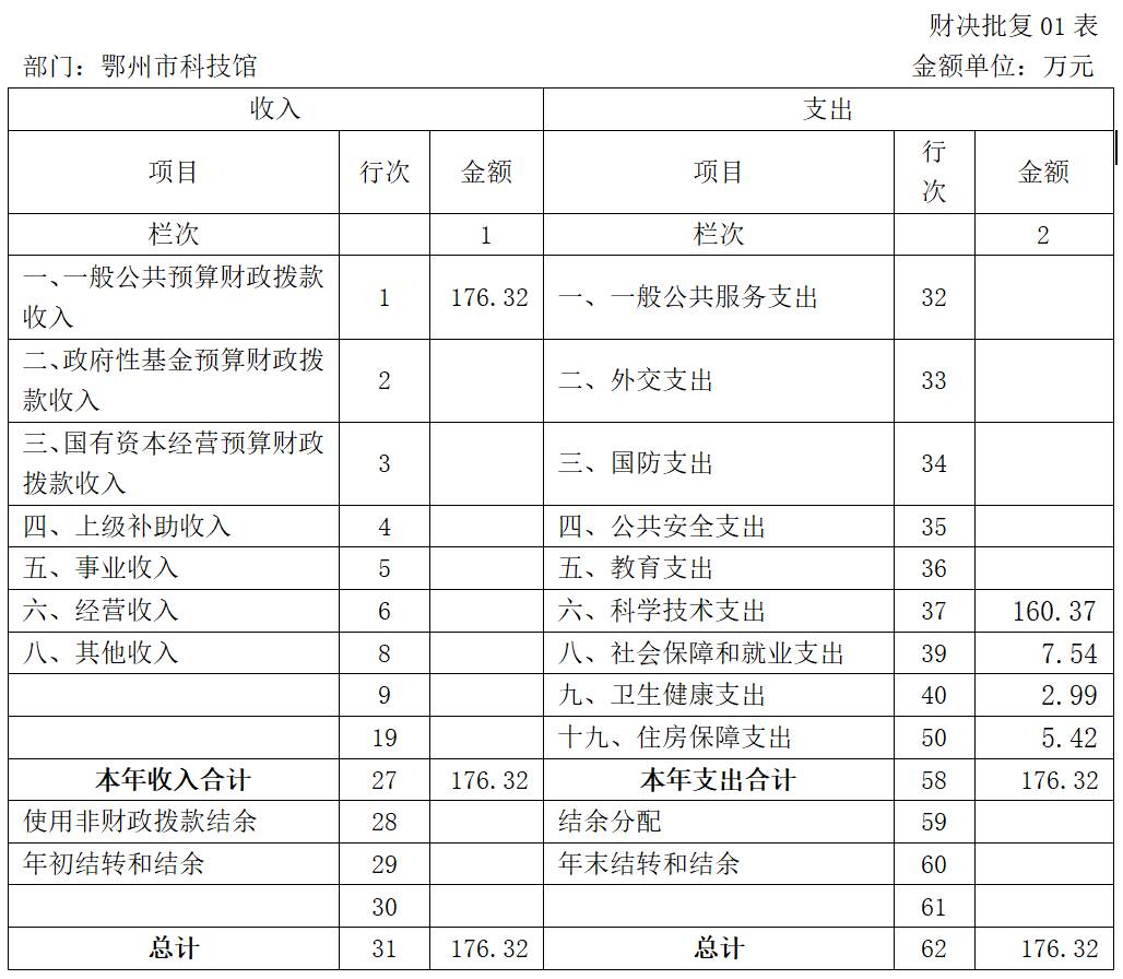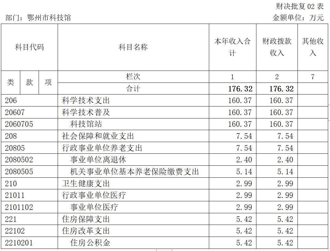第二部分 鄂州市科技館2022年度部門決算表