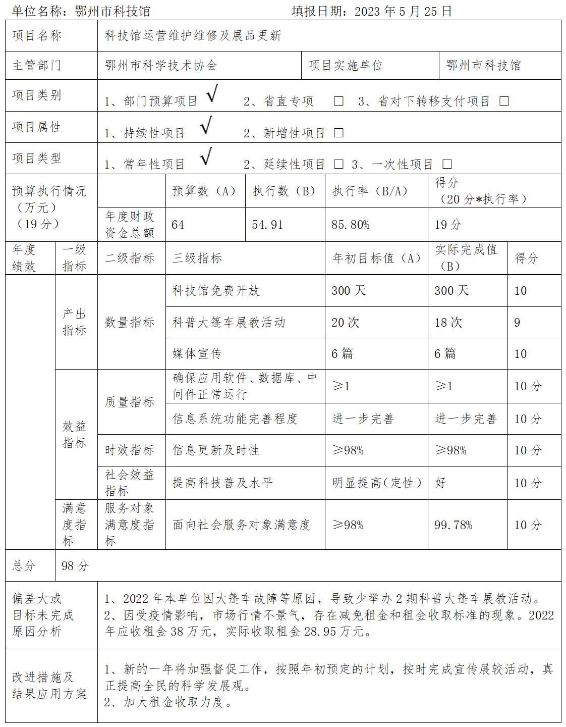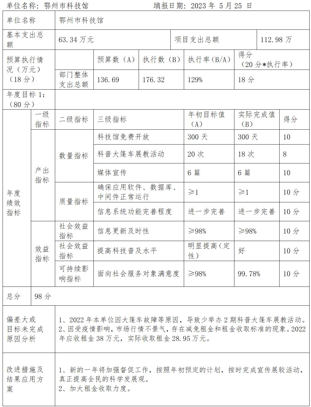 一、2022年度鄂州市科技館整體績效評價(jià)報(bào)告