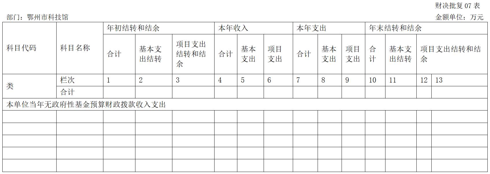 財(cái)政撥款收入支出決算批復(fù)表