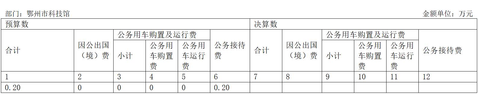 1.因公出國(境)費(fèi)預(yù)算為0萬元,支出決算為0萬元,完成預(yù)算的 100%。決算數(shù)等于預(yù)算數(shù)。