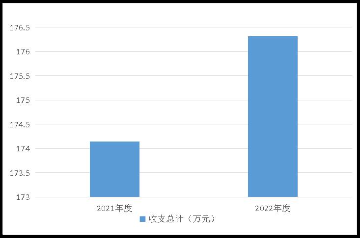 2022年度收、支總計(jì)均為176.32萬元。與2021年度相比,收、支總計(jì)各增加2.18萬元,增加 1.25 %,主要原因是2022年增加了一個(gè)項(xiàng)目、一名在職人員轉(zhuǎn)成退休人員。