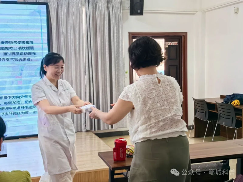 活動(dòng)伊始,主持人以“秋季為何是老年人健康‘闖關(guān)季’”為切入點(diǎn)進(jìn)行活動(dòng)開場(chǎng),并詳細(xì)介紹了本次活動(dòng)的目的及內(nèi)容。隨后,在科普講解環(huán)節(jié),鄂州市中醫(yī)醫(yī)院的嚴(yán)醫(yī)生以“秋季養(yǎng)生”為主題,將中醫(yī)理論與現(xiàn)代醫(yī)學(xué)知識(shí)相融合,為老人們系統(tǒng)地闡釋了秋季的氣候特點(diǎn)以及其對(duì)健康的影響。講解內(nèi)容涵蓋了呼吸道疾病、關(guān)節(jié)疼痛和心腦血管疾病等常見問題的預(yù)防方法,還給出了飲食、作息、運(yùn)動(dòng)等方面的實(shí)用建議。講解過程中,嚴(yán)醫(yī)生通過提問和舉例與老人們積極互動(dòng),現(xiàn)場(chǎng)氣氛十分熱烈。