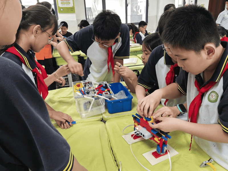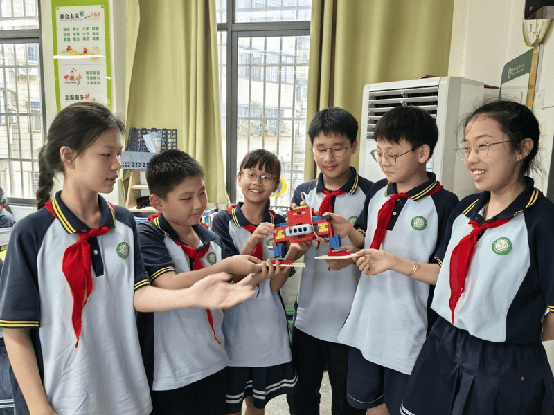 最讓學(xué)生們興奮的,莫過(guò)于動(dòng)手實(shí)踐環(huán)節(jié)。在叮叮老師的指導(dǎo)下,同學(xué)們以小組合作的形式,親手拼裝“掃地機(jī)器人”,并發(fā)揮創(chuàng)意為模型設(shè)計(jì)獨(dú)特造型與個(gè)性名稱,如“天安門(mén)一號(hào)”等充滿想象力的作品紛紛誕生。從硬件組裝到線路連接,再到編程刷卡、調(diào)試啟動(dòng),孩子們?cè)谝徊讲綄?shí)踐中真切體會(huì)到“讓想法變成現(xiàn)實(shí)”的成就感。編程不再遙遠(yuǎn),AI不再神秘,科技的種子正是在這樣的實(shí)踐中悄悄生根發(fā)芽。