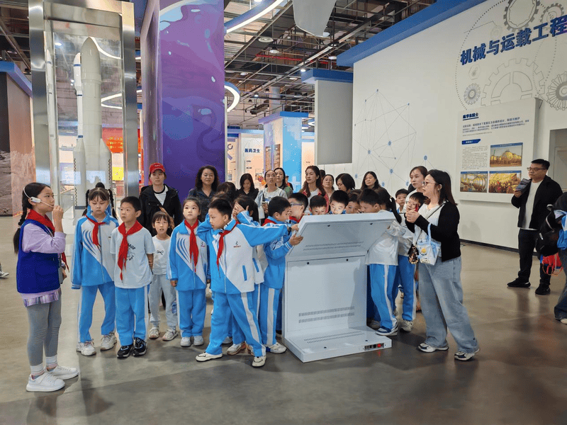 一踏進(jìn)科技館大門,親子家庭就像發(fā)現(xiàn)了寶藏的小探險家,在工作人員的引導(dǎo)下迫不及待地踏上了奇妙的科技探秘之旅。瞧,小小志愿者們化身“科學(xué)向?qū)?rdquo;,用生動有趣的語言講解著機(jī)械的奧秘、信息的奇妙、能源的力量——從農(nóng)業(yè)的小智慧到航天航空的大夢想,一個個領(lǐng)域知識被他們講得像故事書一樣精彩。講解時,志愿者們還時不時拋出“小問題”與孩子們互動,逗得大家眼睛發(fā)亮,好奇心和探索欲像小火箭一樣“嗖”地沖上云霄,親子家庭在一問一答中親手揭開了科學(xué)世界的神秘面紗。